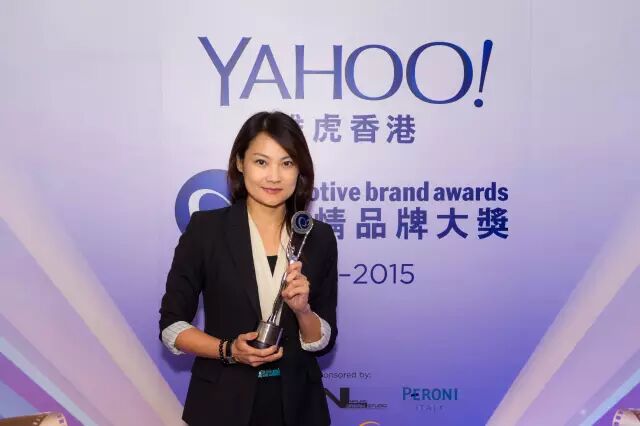 友邦香港首席品牌及傳訊部總監姚綺芬小姐接受「Yahoo!感情品牌大獎」殊榮。